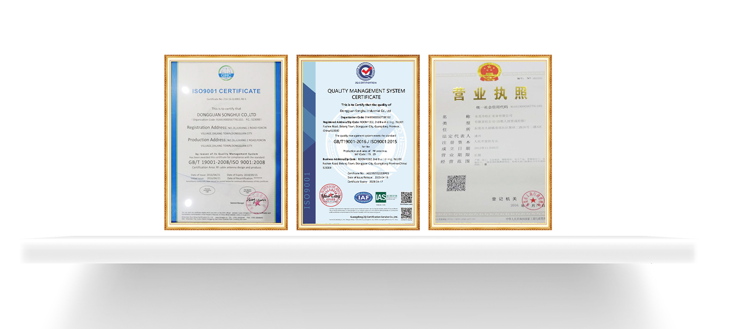 Dongguan Songhui Industrial Co., Ltd. was established in 2009. It is a professional manufacturer of 2.4G antennas, 2G antennas, 3G antennas, and 4G antennas. The company has a good production environment, professional production and testing equipment and advanced production technology, perfect testing standards and quality management system. The company also has senior management backbones and engineering and technical personnel, as well as business development personnel. With strong antenna R&D and production capabilities, the products are currently facing the entire domestic and foreign markets, mainly serving MID, set-top boxes, laser projection, Bluetooth, wireless office fingerprint punching, Zigbee, industrial computers, all-in-one machines, wireless routing, tire pressure monitoring, satellite navigation positioning, etc.....